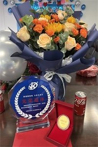 退休儀式上,劉總助為曾師傅獻(xiàn)上“忠誠員工金牌”、“退休紀(jì)念獎杯”以及鮮花。在全體員工的祝福下,曾師傅正式光榮退休。