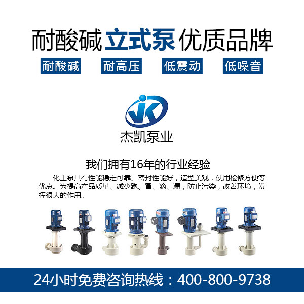 杰凱立式離心泵適合各種酸堿液循環(huán)、冷卻、噴洗設(shè)備,廢氣塔、蝕刻機(jī)、化學(xué)鍍、無電解鎳等特殊場合廣泛